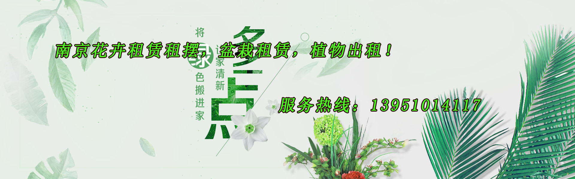 南京市江寧區綠地花卉園藝中心是一家專業從事南京綠植養護、辦公室綠化、綠色植物出租、花卉租賃、盆栽植物租擺、花草租賃、綠化租擺、鮮花綠植租賃、家庭植物布置、盆景植物養護及花木養殖銷售。